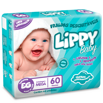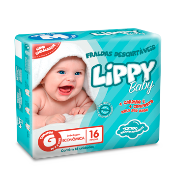 As fraldas descartáveis Lippy Baby contam com 2 opções de quantidades: Lippy Baby Econômica e Lippy Baby Mega